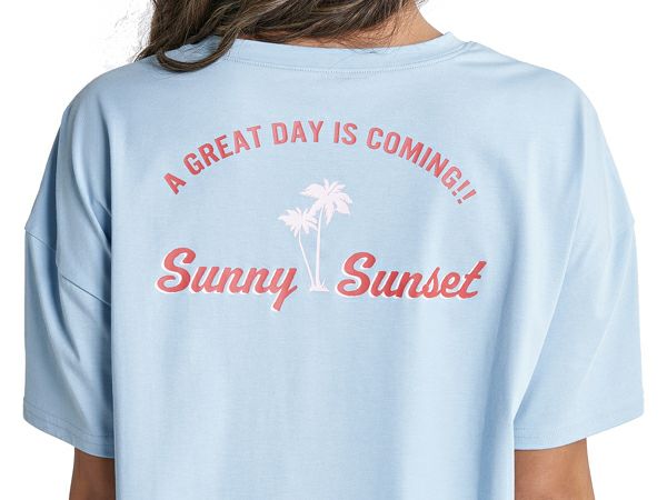 フロントにはROXYのロゴを、パームツリーとメッセージのグラフィックを