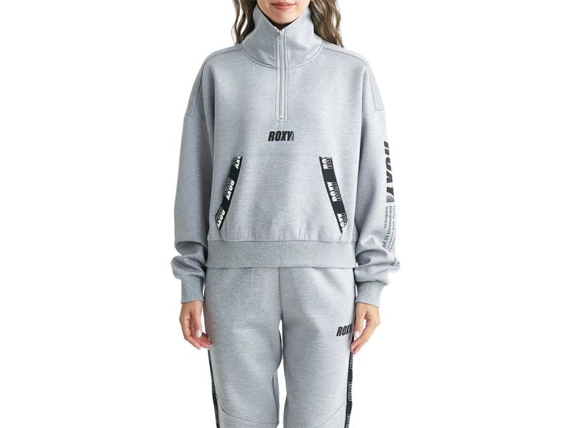スポーツ フィットネス ウェア ロキシー ROXY MY WAY STAND ZIP マイ ウェイ スタンド ジップ レディース 秋 冬 速乾 UVカット グレー 灰色 スポーツ フィットネス ハーフジップ トップス RPO241544-GRY