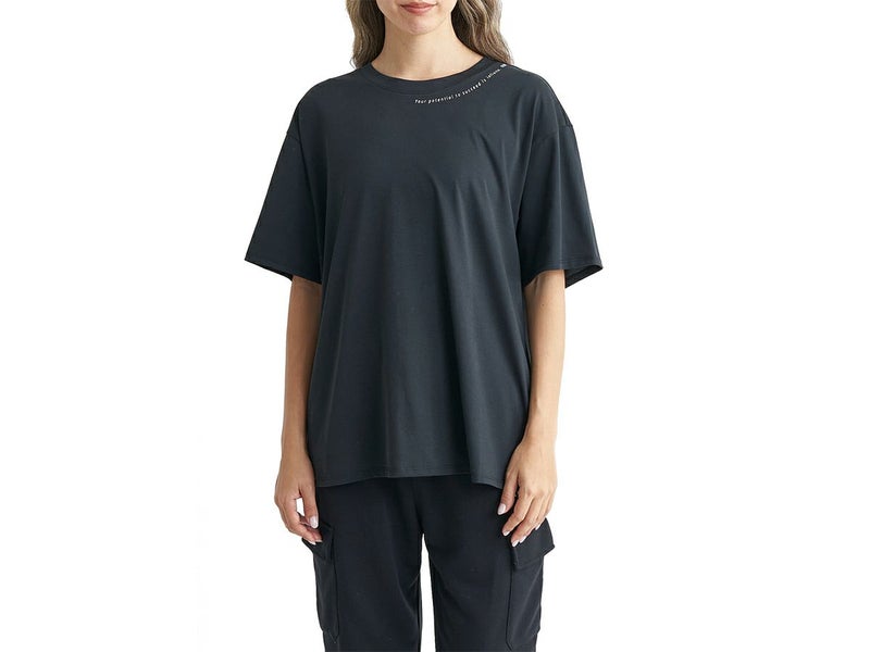 ワイドシルエットのプリントTシャツ。