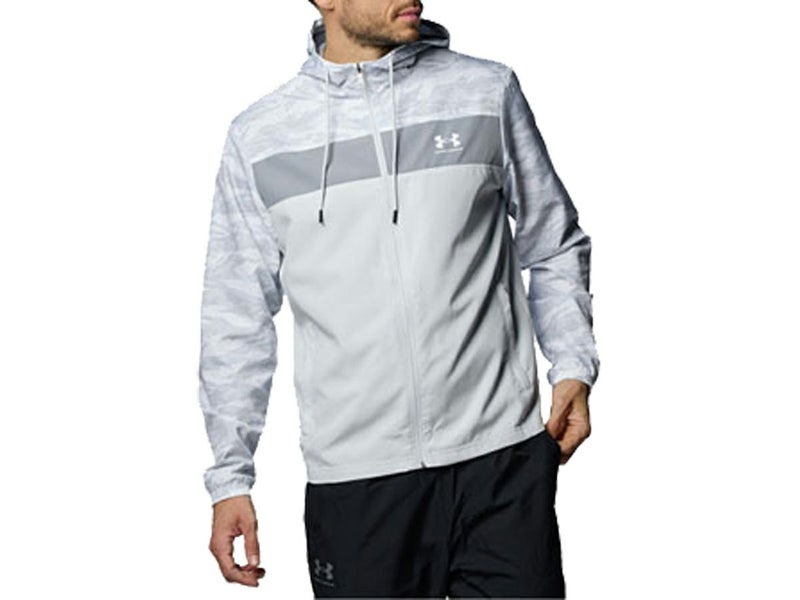 スポーツ トレーニング ウェア アンダーアーマー UNDER ARMOUR スポーツスタイル ウィンドブレーカー プリント ジャケット メンズ グレー 灰色 スポーツ トレーニング パーカー ジャケット 1384814-023