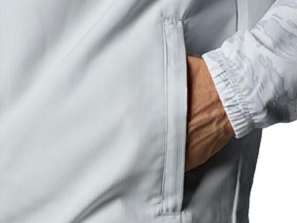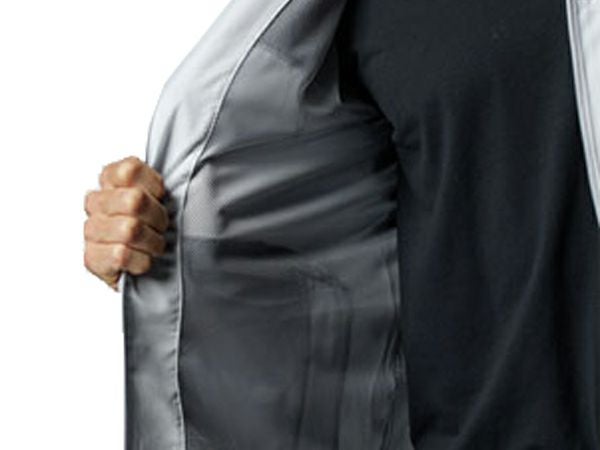 撥水加工を施したファブリックが雨や雪をはじき、悪天候下でもドライで