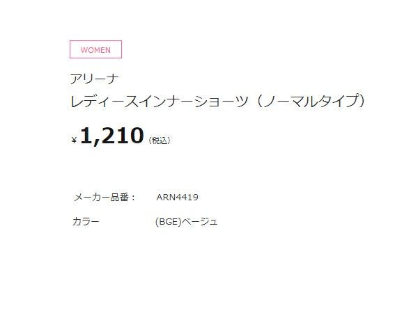 【10%OFF】 アリーナ arena インナーショーツ(ノーマルタイプ) レディース ベージュ 水泳 スイム インナー ショーツ ARN4419-BGE