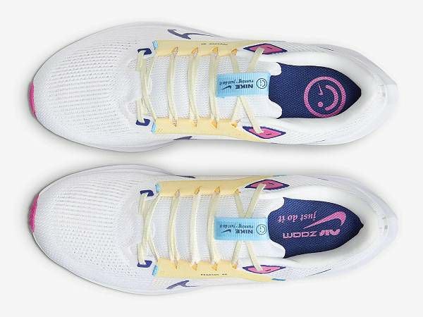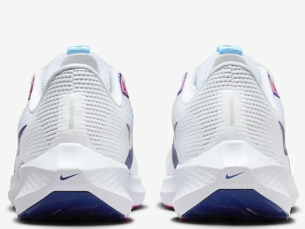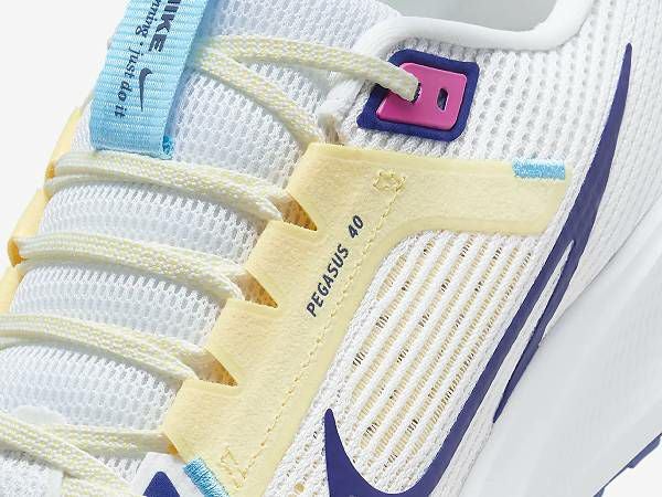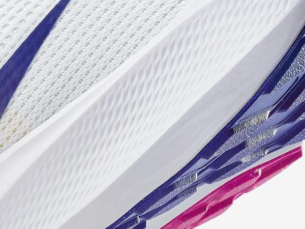 ペガサス 40のデザインは、シューズ内部の機能から改良点を考えました。シューズが内側から土踏まずを優しく包み込み、外から締め付けられるような感覚を減らす構造です。足中央部のバンドが、さらに固定感を高めています。 シューズ内側の快適さに加え、優れた通気性も追求しました。足の形状にフィットする円形のパターンを開発し、足の最もデリケートな部分であるつま先、土踏まず、ヒールをしっかり保護します。