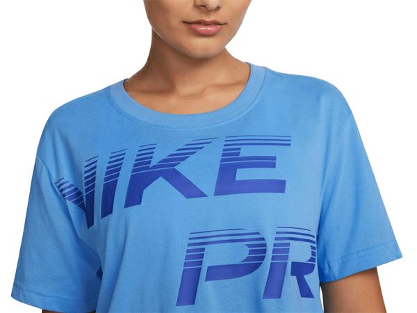 【10%OFF】 ナイキ NIKE PRO グラフィック S/S Tシャツ レディース 春 夏 ブルー 青 スポーツ フィットネス 半袖 Tシャツ FQ4986-412