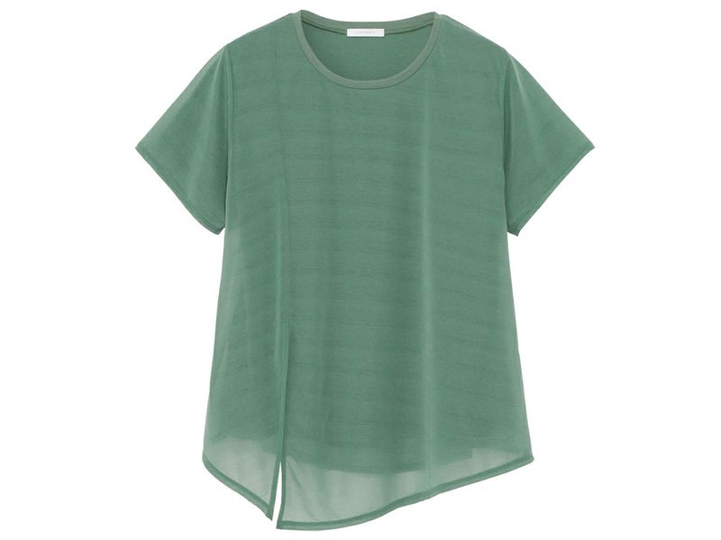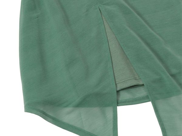 表側は薄手で透け感のあるシアー素材、内側は吸汗速乾性に優れ、