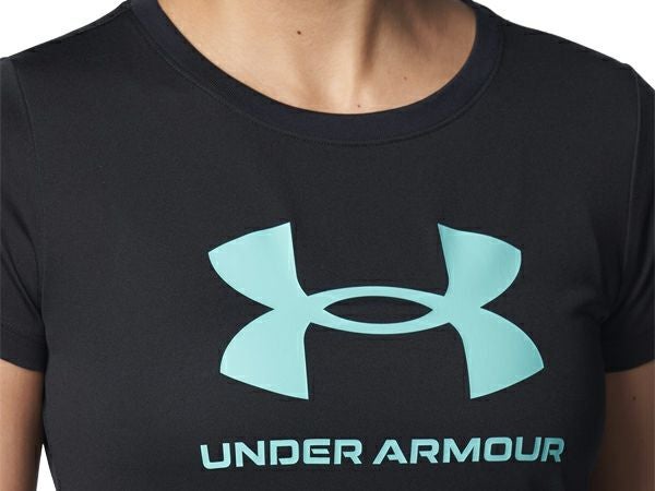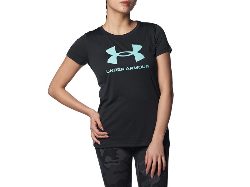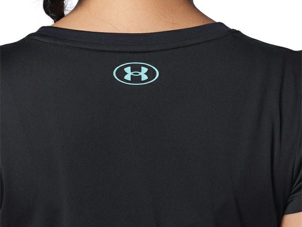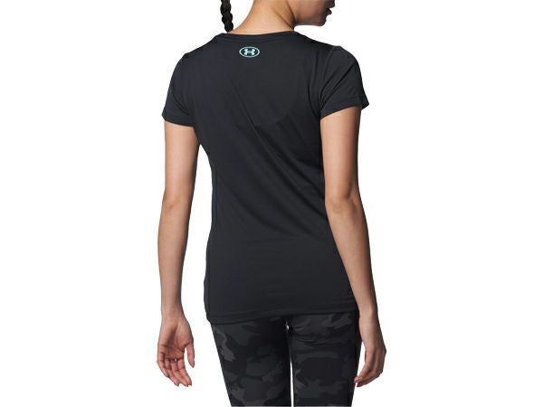 スポーツ フィットネス ウェア アンダーアーマー UNDER ARMOUR テック ビッグロゴ ショートスリーブTシャツ レディース 春 夏 ブラック 黒 スポーツ フィットネス 半袖 Tシャツ 1384708-001
