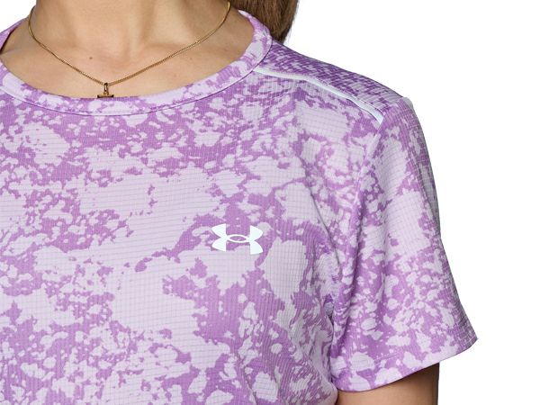 スポーツ フィットネス ウェア アンダーアーマー UNDER ARMOUR スピードストライド オールオーバー プリント ショートスリーブTシャツ レディース 春 夏 パープル 紫 スポーツ フィットネス 半袖 Tシャツ 1384771-543
