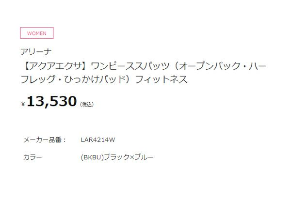 【10%OFF】水泳 スイム フィットネス 水着 アリーナ arena アクアエクサ ワンピーススパッツ(オープンバック ハーフレッグ ひっかけパッド) レディース ブラック 黒 水泳 スイム フィットネス 水着 オールインワン LAR4214W-BKBU
