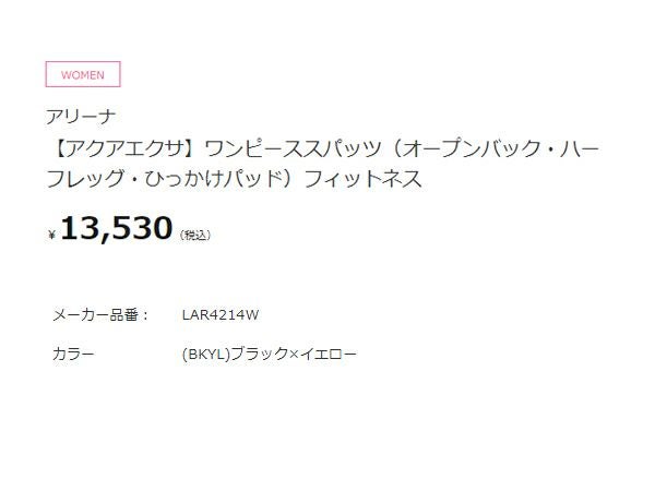 【10%OFF】水泳 スイム フィットネス 水着 アリーナ arena アクアエクサ ワンピーススパッツ(オープンバック ハーフレッグ ひっかけパッド) レディース ブラック 黒 水泳 スイム フィットネス 水着 オールインワン LAR4214W-BKYL