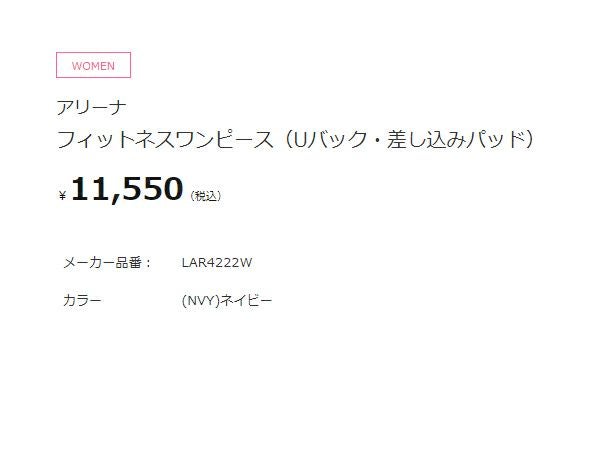 【10%OFF】水泳 スイム フィットネス 水着 アリーナ arena フィットネスワンピース(Uバック 差し込みパッド) レディース ネイビー 紺 水泳 スイム フィットネス 水着 ワンピース LAR4222W-NVY