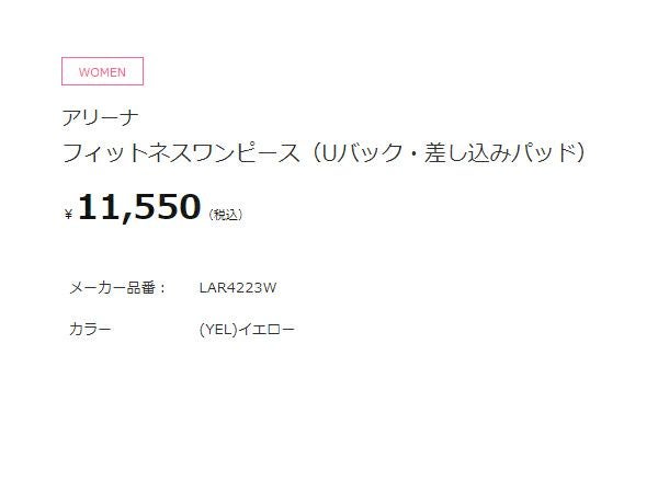 【10%OFF】水泳 スイム フィットネス 水着 アリーナ arena フィットネスワンピース(Uバック 差し込みパッド) レディース イエロー 黄色 水泳 スイム フィットネス 水着 ワンピース LAR4223W-YEL