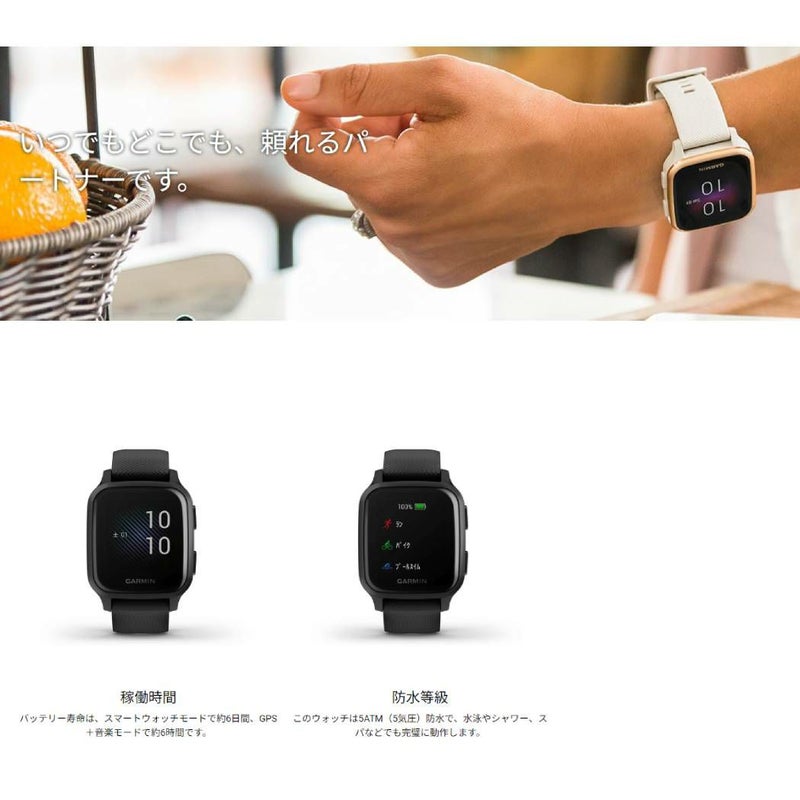 Venu Sq(ヴェニュー エスキュー)は明るいカラーディスプレイ・日常的に使えるデザイン・健康状態モニタリング機能・フィットネス機能を備えたGPSスマートウォッチです。