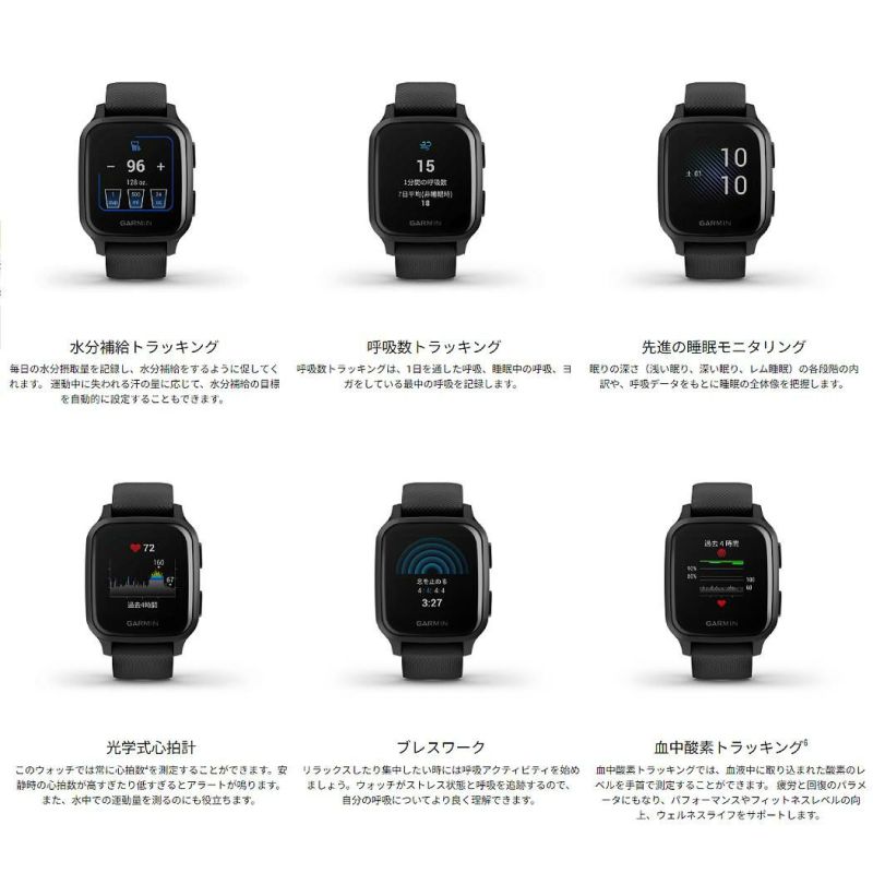 ※Garmin製品の血中酸素トラッキングによる測定は、医療目的で使用されることを意図するものではなく、あくまで一般的なフィットネスとウェルネスの範囲で利用することを目的とするものです。