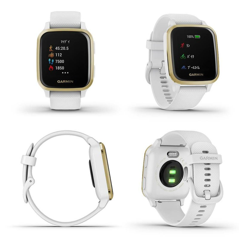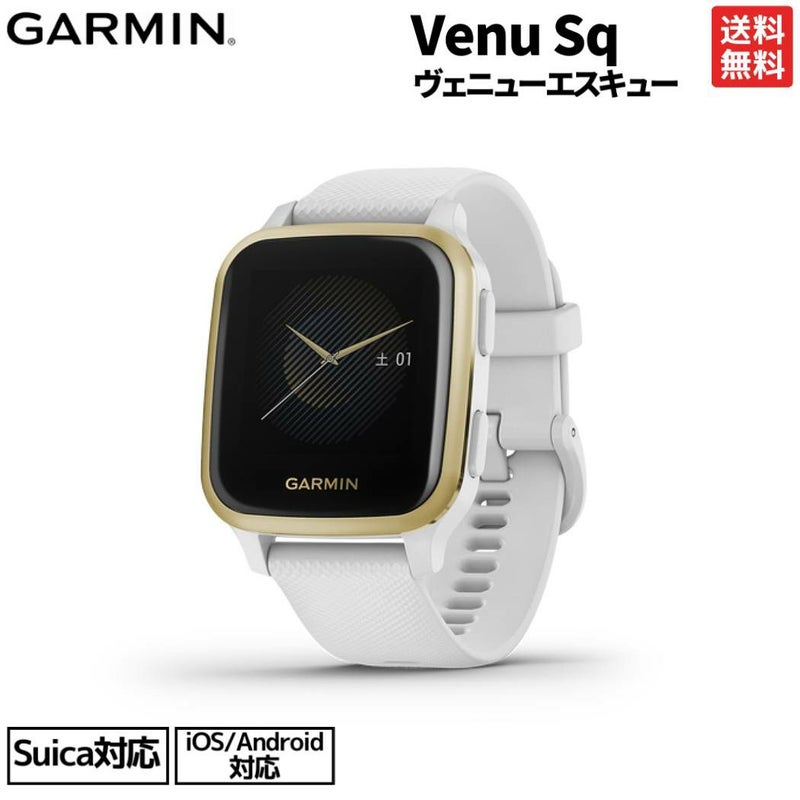 Venu Sq本体(ホワイトケースとシリコンバンド付きライトゴールドアルミニウムベゼル)