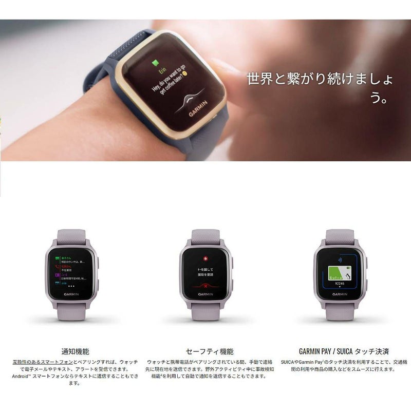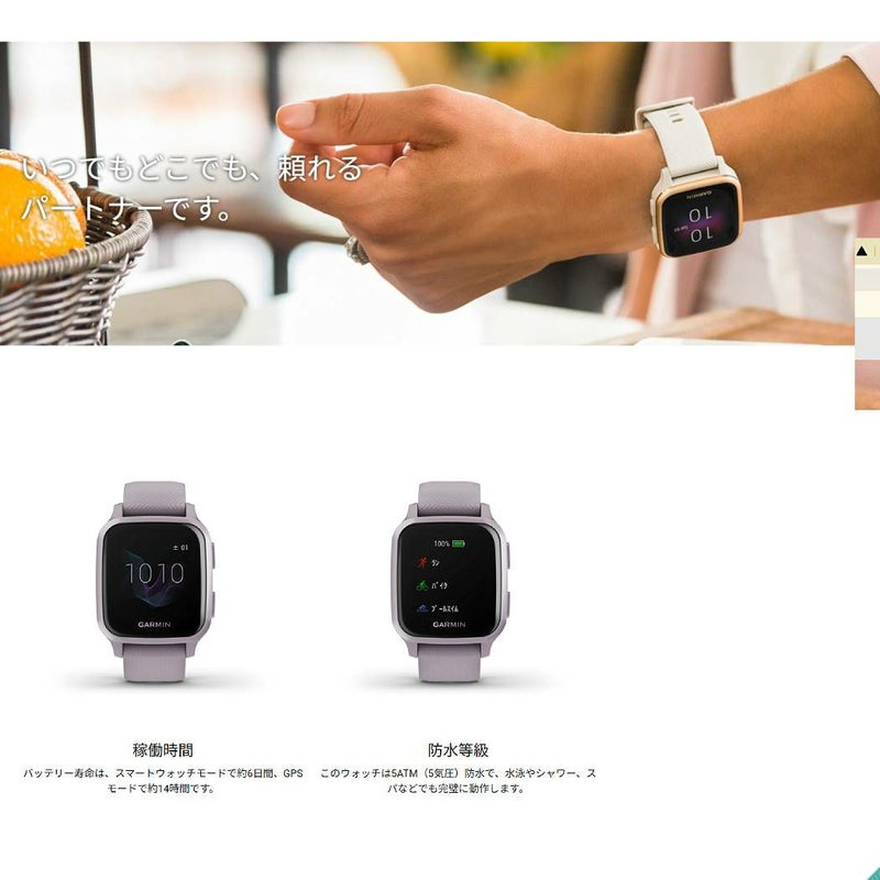 Venu Sq(ヴェニュー エスキュー)は明るいカラーディスプレイ・日常的に使えるデザイン・健康状態モニタリング機能・フィットネス機能を備えたGPSスマートウォッチです。