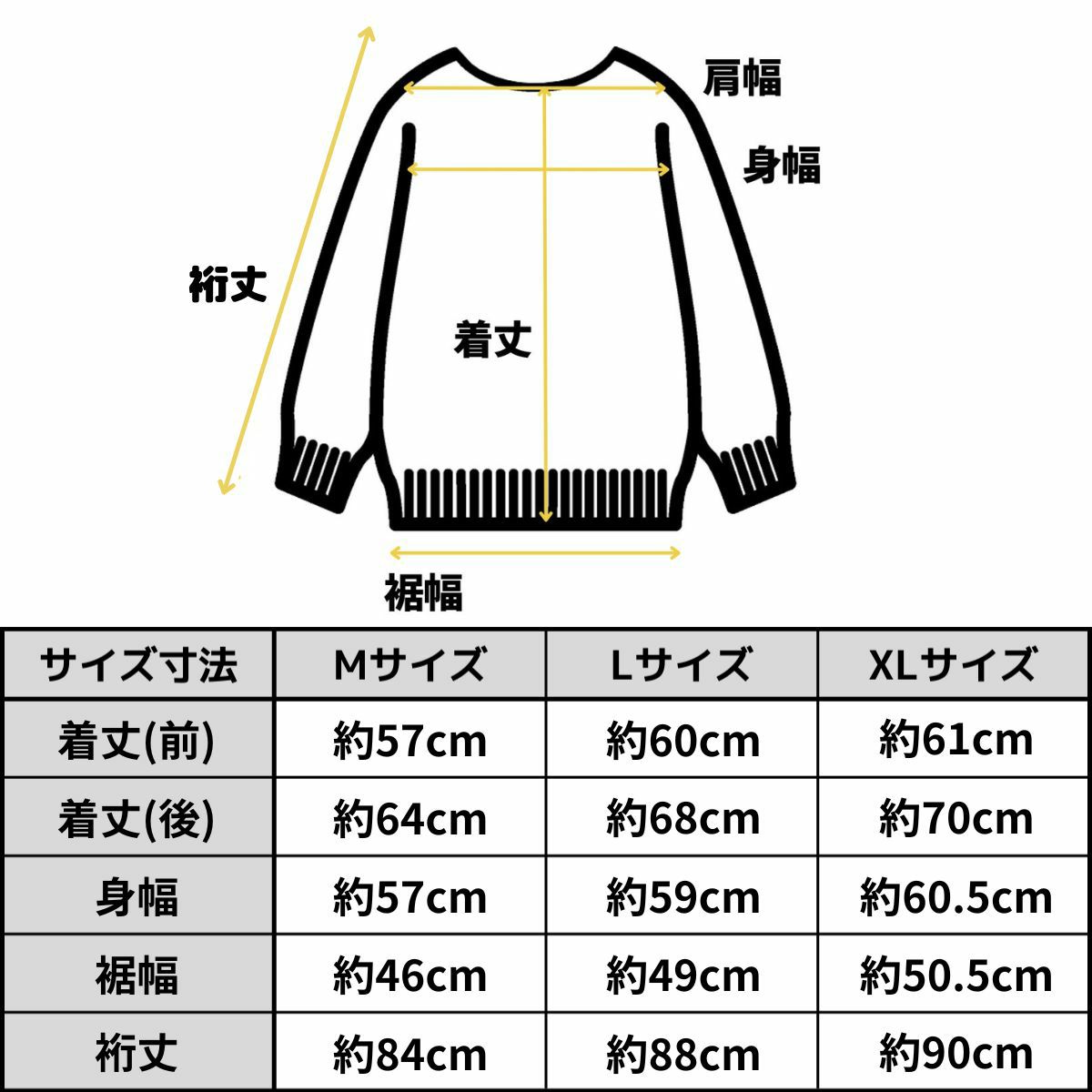 XL/着丈(前):61cm 着丈(後):70cm 身幅:60.5cm 裾幅:50.5cm 裄丈:90cm
