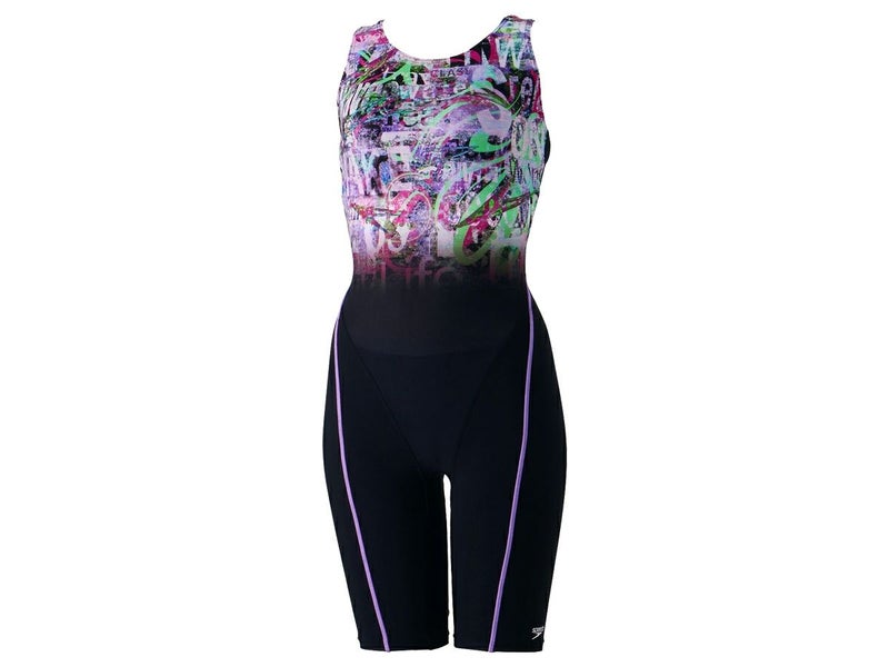 6. スピード speedo Letter Spray Loosen Kneeskin レタースプレールースンニースキン レディース ブラック 黒 水泳 スイム フィットネス 水着 オールインワン SFW12401-GP