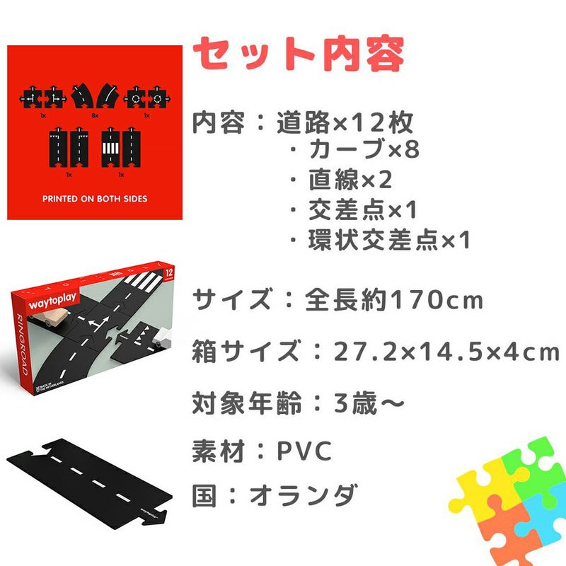 内容:道路×12枚(カーブ×8、直線×2、交差点×1、環状交差点×1)