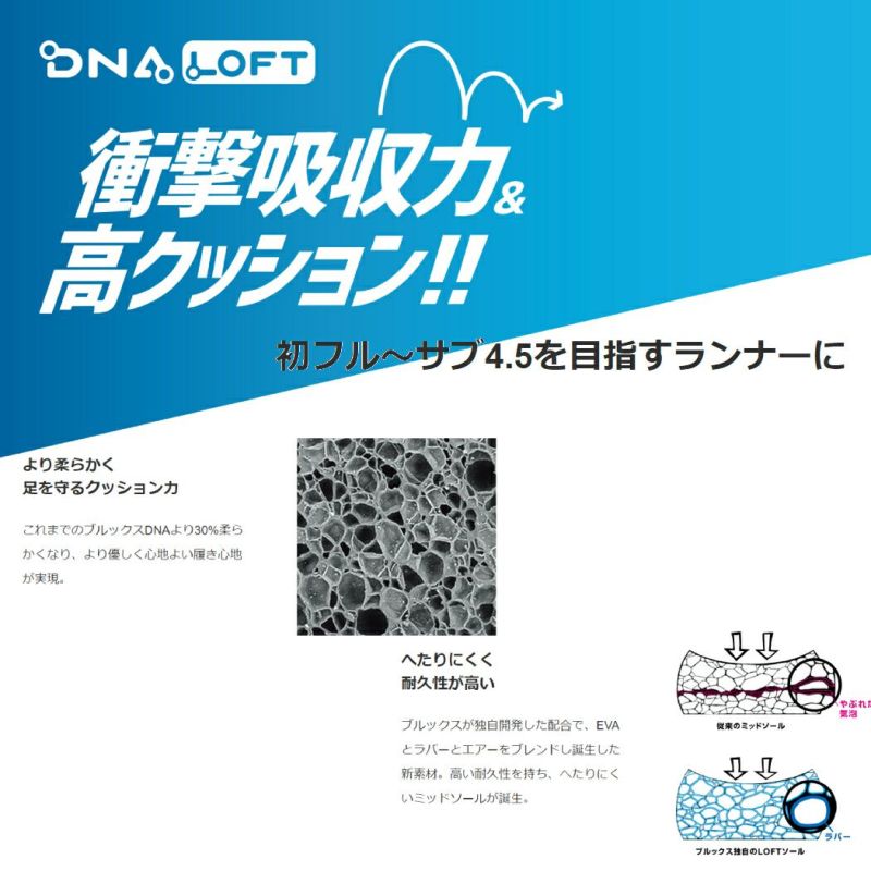 クッショニングをアップデート:ソフトで軽量なDNALOFTv2クッショニングを採用し、滑らかな履き心地になりました。