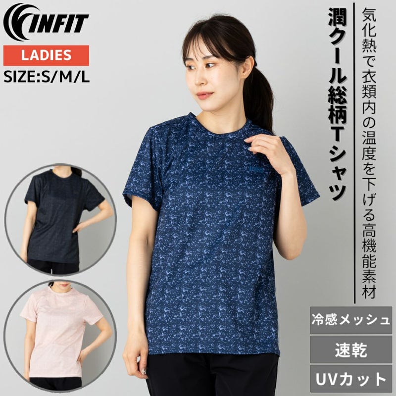 6. インフィット INFIT 潤クール総柄Tシャツ レディース スポーツ フィットネス ランニング ジム ヨガ ウエア 半袖 Tシャツ NK314082 アウトレット セール