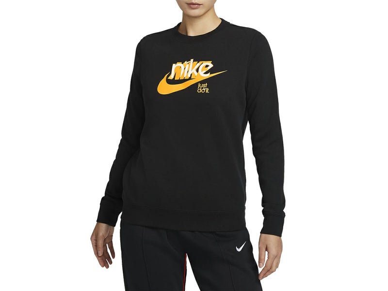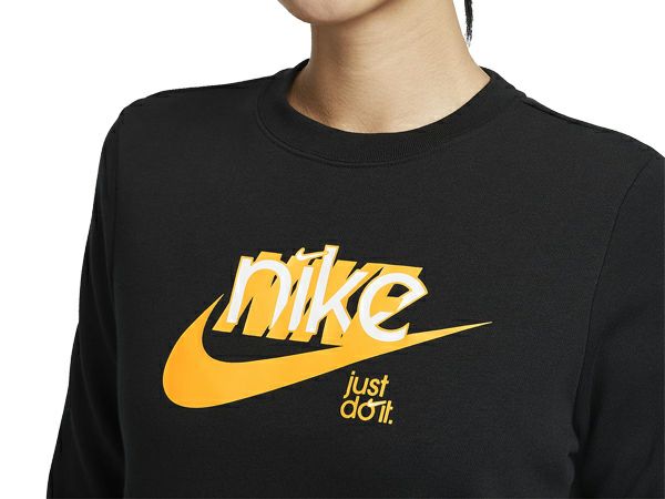 スポーツ トレーニング ウェア ナイキ NIKE スポーツウェア クラブ フリース フレンチ テリー グラフィック クルーネック スウェットシャツ レディース ブラック 黒 スポーツ フィットネス スウェット トレーナー FN3629-010
