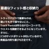 トラックパンツで重要なのは動いてもずり落ちないこと。