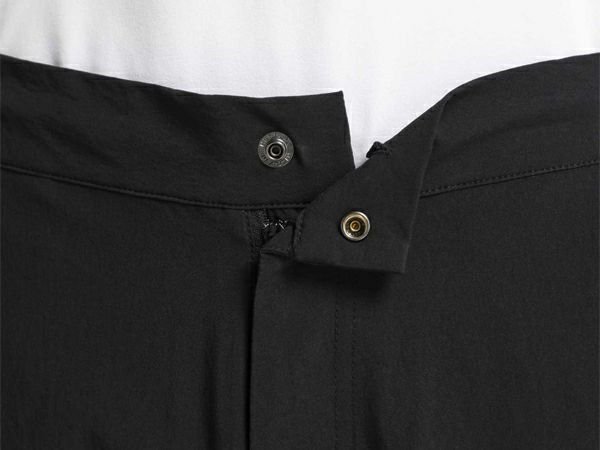 左右ヒップポケット有り、前開き仕様、ウエストスピンドル有。