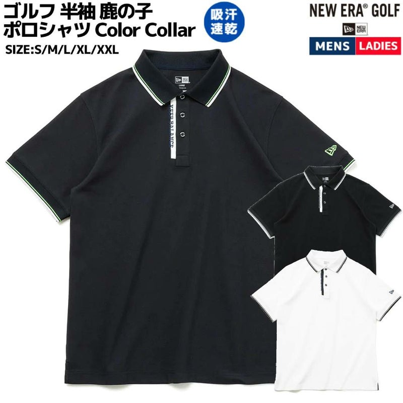 ニューエラ NEW ERA ゴルフ 半袖 鹿の子 ポロシャツ Color Collar メンズ レディース ユニセックス ブラック ネイビー ホワイト ゴルフウェア 吸汗速乾 UV 抗菌 14109041 14109042 14109043