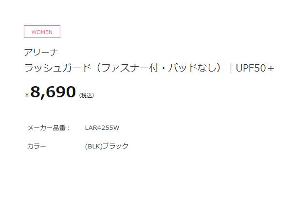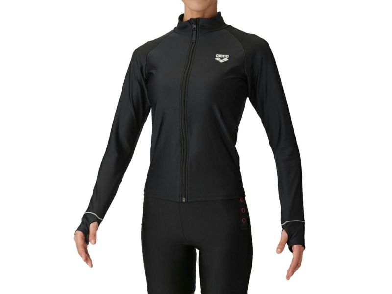 【10%OFF】水泳 スイム 海水浴 ラッシュガード アリーナ arena ラッシュガード(ファスナー付・パッドなし) レディース ブラック 黒 水泳 スイム 海水浴 ラッシュガード LAR4255W-BLK