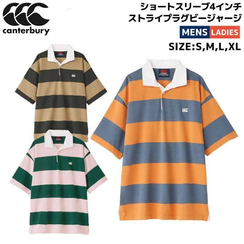 カンタベリー CANTERBURY ショートスリーブ 4インチ ストライプ ラグビージャージ メンズ レディース ユニセックス ポロシャツ ラガーシャツ カジュアル 半袖 ポロシャツ RA34135 34 59 63 アウトレット セール