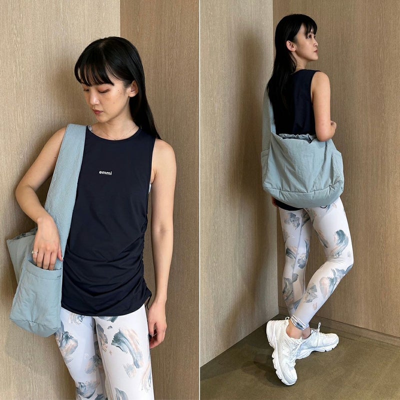 YOGAウェアの上に着て頂けるようにヒップあたりが隠れる丈でデザインしています。
