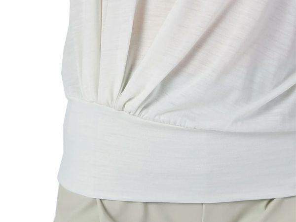 アシンメトリーのドレープが美しいフレンチスリーブのTEEです。