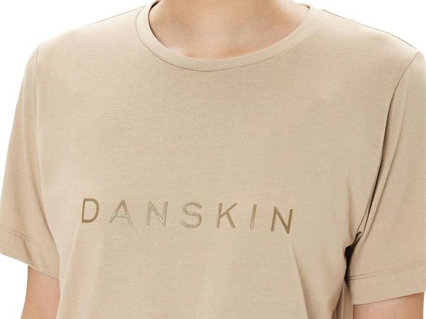 DANSKINのロゴをプリントした吸汗速乾機能付きショートスリーブティーです。