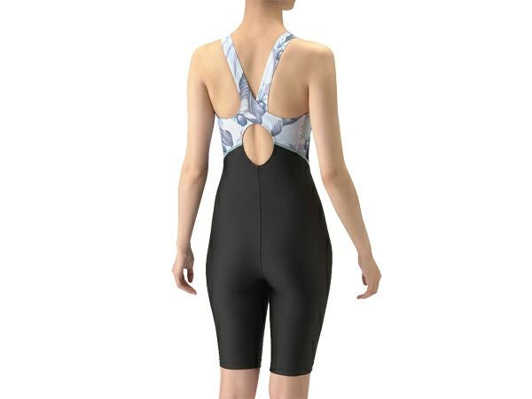6. アリーナ arena フィットネスワンピーススパッツ(オープンバック ハーフレッグ ぴったりパッド) レディース ブラック 黒 水泳 スイム フィットネス 水着 オールインワン AS4FWF03W-BKBL