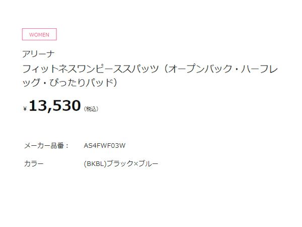 【26%OFF】水泳 スイム フィットネス 水着 アリーナ arena フィットネスワンピーススパッツ(オープンバック ハーフレッグ ぴったりパッド) レディース ブラック 黒 水泳 スイム フィットネス 水着 オールインワン AS4FWF03W-BKBL