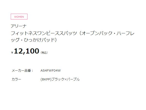 6. アリーナ arena フィットネスワンピーススパッツ(オープンバック ハーフレッグ ひっかけパッド) レディース ブラック 黒 水泳 スイム フィットネス 水着 オールインワン AS4FWF04W-BKPP