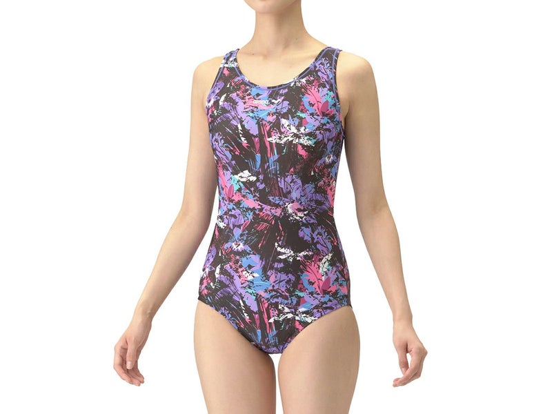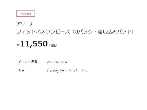 6. アリーナ arena フィットネスワンピース(Uバック 差し込みパッド) レディース ブラック 黒 パープル 紫 水泳 スイム フィットネス 水着 ワンピース AS4FWF20W-BKPP アウトレット セール