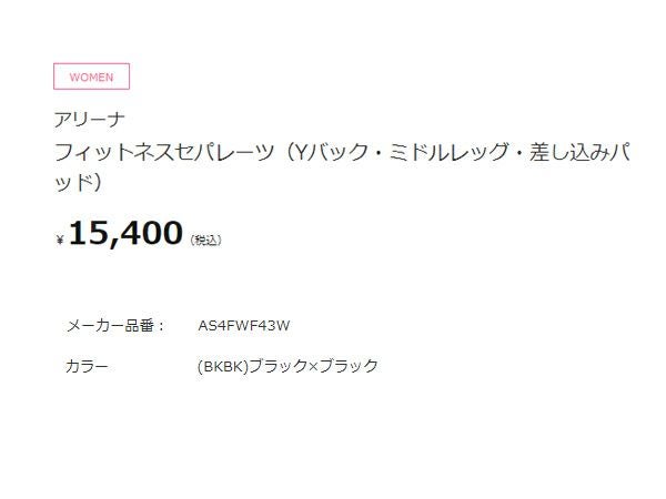 6. アリーナ arena フィットネスセパレーツ(Yバック ミドルレッグ 差し込みパッド) レディース ブラック 黒 水泳 スイム フィットネス 水着 AS4FWF43W-BKBK アウトレット セール