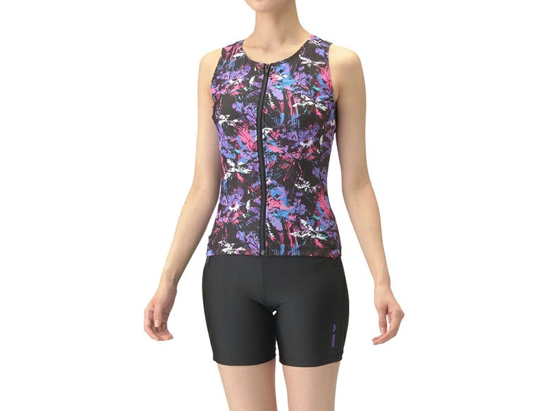 6. アリーナ arena フィットネスセパレーツ(カバーバック ミドルレッグ 差し込みパッド) レディース パープル 紫 ブラック 黒 水泳 スイム フィットネス 水着 AS4FWF46W-PPBK アウトレット セール