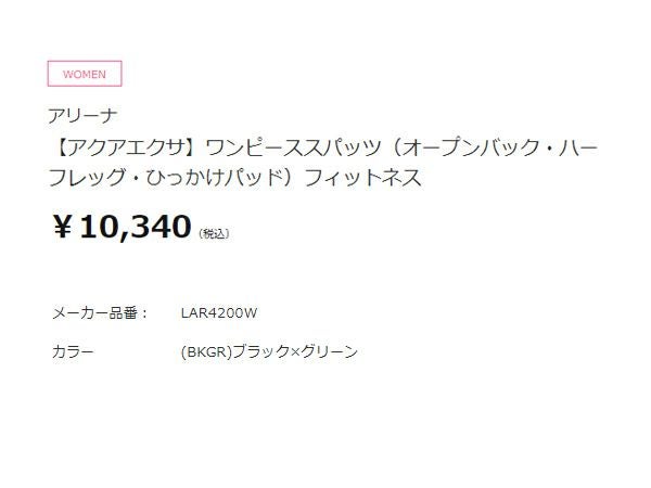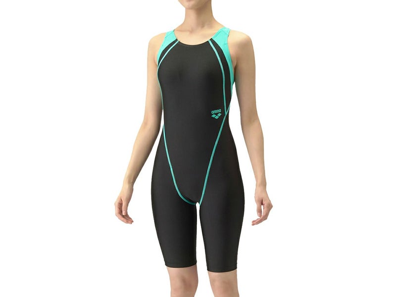 6. アリーナ arena アクアエクサ ワンピーススパッツ(オープンバック ハーフレッグ ひっかけパッド) レディース ブラック 黒 水泳 スイム フィットネス 水着 オールインワン LAR4200W-BKGR