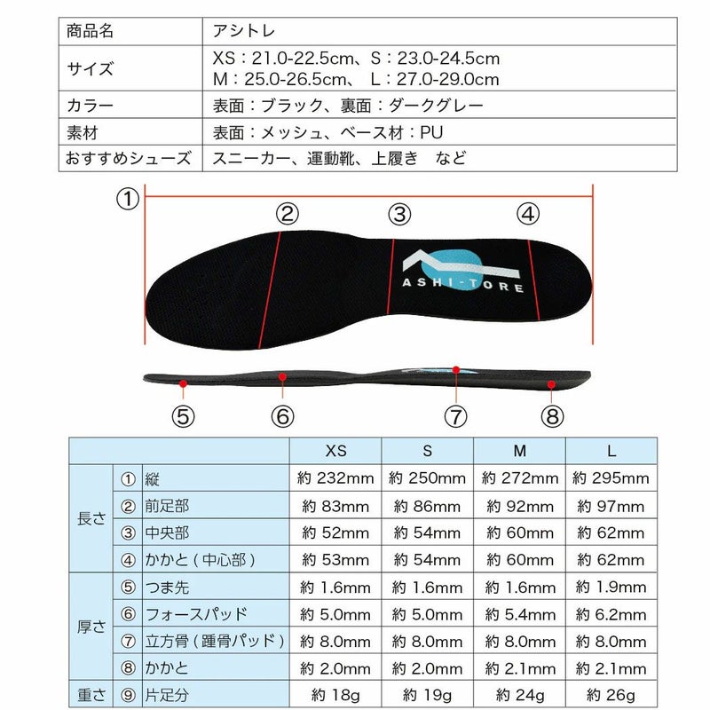 ※アシトレMenとWomenは同一のインソールとなっており、パッケージのみ異なっております。