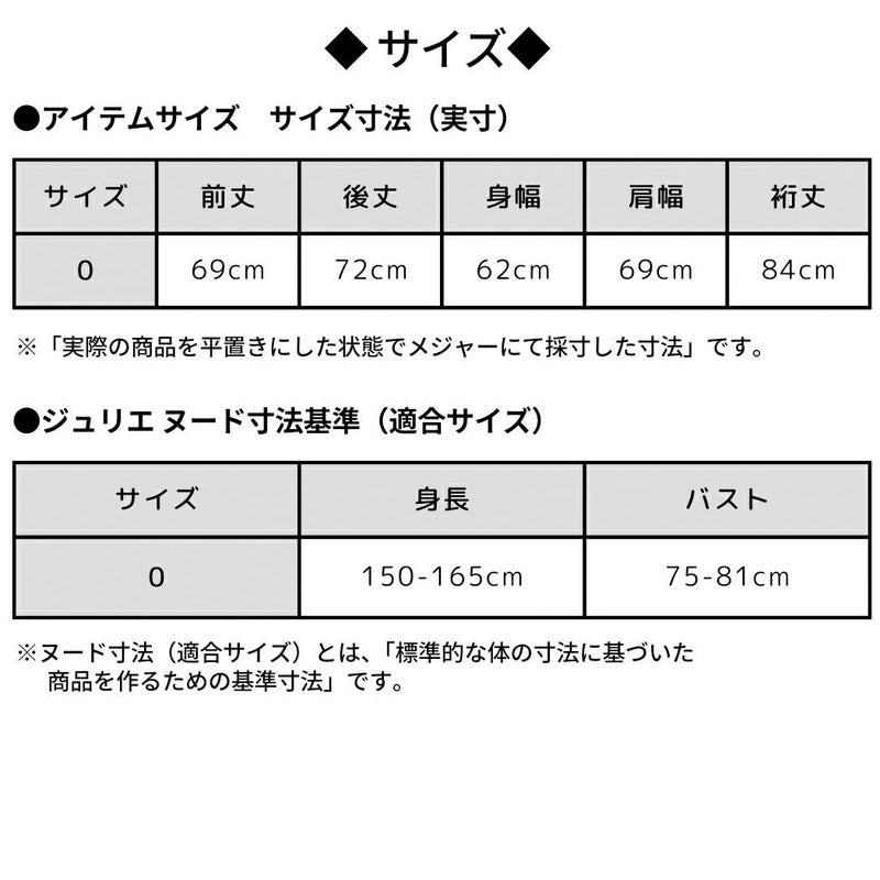サイズ0/身長:150-165cm バスト:75-81cm