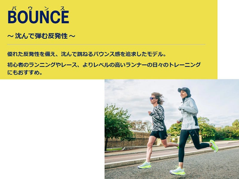 沈んで跳ね返るバウンス感を追求し、レースからトレーニングまでおすすめのシューズ。