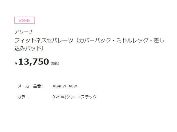 6. アリーナ フィットネスセパレーツ(カバーバック ミドルレッグ 差し込みパッド) レディース arena アウトレット セール