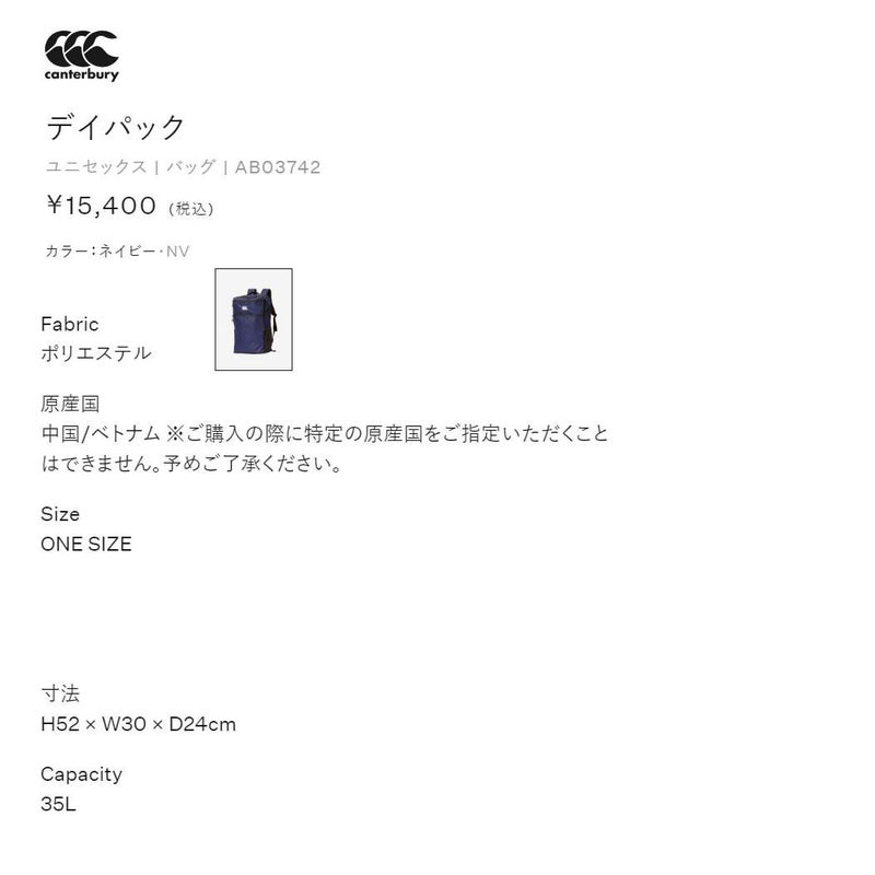 フェイスカバー カンタベリー CANTERBURY DAY PACK デイパック 35L メンズ レディース ユニセックス ネイビー 紺 ブラック 黒スポーツ カジュアル バッグパック リュック AB03742 NV 19