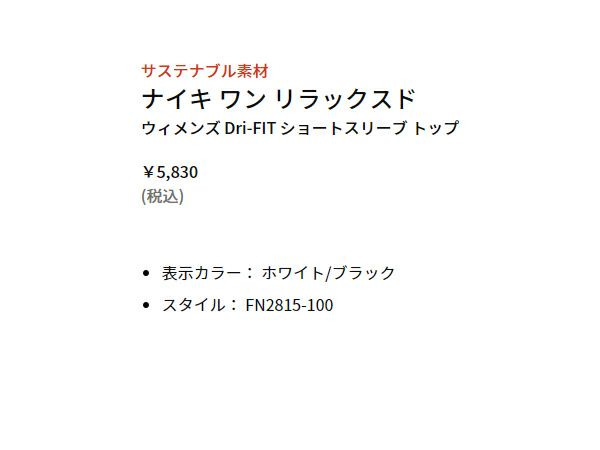 6. ナイキ NIKE Dri-FIT ワン リラックスド ショートスリーブ トップ レディース 春 夏 ホワイト 白 スポーツ フィットネス 半袖 Tシャツ FN2815-100