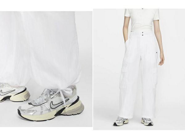 折り返しのあるウエストバンドと裾のひもにより、スタイルをカスタマイズできます。