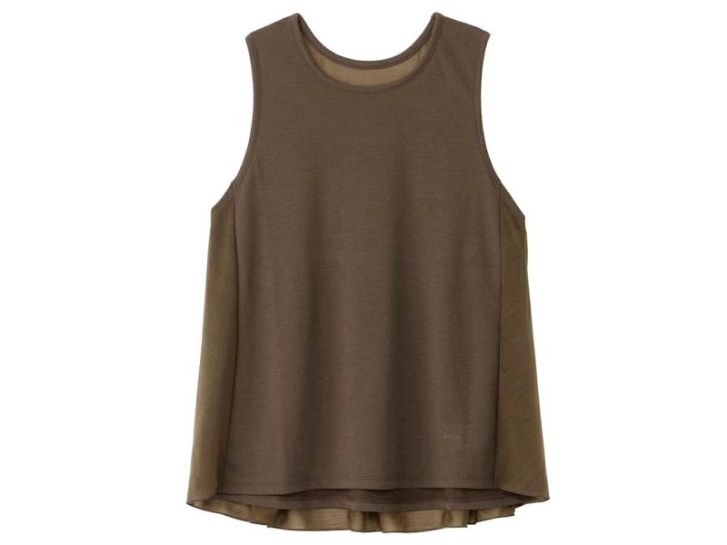 素材感の異なる2素材を組み合わせたレイヤードデザインのタンクトップです。