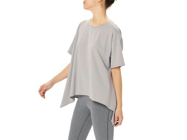 【10%OFF】スポーツ フィットネス ウェア ダンスキン DANSKIN アシンメトリーフレアティー レディース 春 夏 グレー 灰色 スポーツ フィットネス 半袖 Tシャツ DC724105-TH