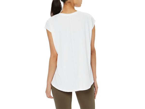 シンプルな小さめロゴプリントとすっきりしたフレンチスリーブで
